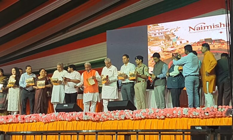 मिश्रिख/सीतापुर। मिश्रित-नैमिषारण्य होली मेला महोत्सव के सांध्य कार्यक्रम में दीप प्रज्वलित कर नैमिषारण्य 84 कोसीय होली महोत्सव का शुभारंभ प्रभारी मंत्री राज्यमंत्री संसदीय कार्य चिकित्सा शिक्षा, स्वास्थ्य , परिवार कल्याण मातृ एवं शिशु कल्याण विभाग मयंकेश्वर शरण सिंह ने किया। मेले में प्रभारी मंत्री जिलाधिकारी अनुज सिंह व पुलिस अधीक्षक घुले सुशील चन्द्रभान ने स्मृति चिन्ह भेंट कर उनका स्वागत किया। सभी अतिथियों ने नैमिषारण्य पुस्तक का विमोचन किया। मंत्री ने अपने संबोधन में कहा कि इस प्रकार के आयोजन भारतीय संस्कृति को आगे बढ़ाने का काम करते हैं। मिश्रिख मेला महोत्सव पहुंचने से पहले मन्त्री तीर्थ नैमिषारण्य पहुंचे।