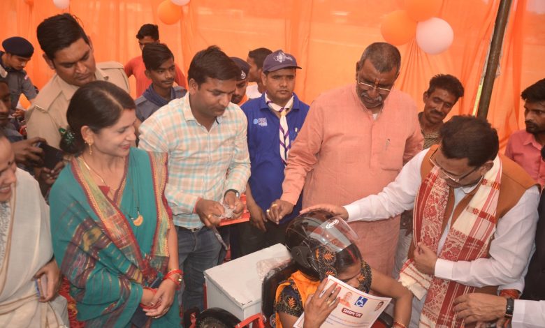 दिव्यांगजन सशक्तीकरण मंत्री ने दिव्यांगों को वितरित की मोटराईज्ड ट्राईसाइकिल