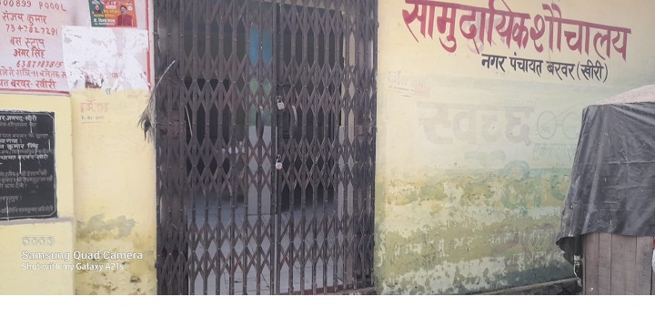 बरवर। बस स्टैंड पर बना सुलभ शौचालय पूर्व चेयरमैन द्वारा बनवाया गया था। वर्तमान चेयरमैन ने उसमें भी ताला जड़वा दिया। इसके अलावा मौजूदा चेयरमैन ने विकास के नाम पर नगर में दर्जनों सुलभ शौचालय तो बनवा दिए पर सभी का हाल बेहाल है जनता आज भी खुले में शौच को जाने को मजबूर है।