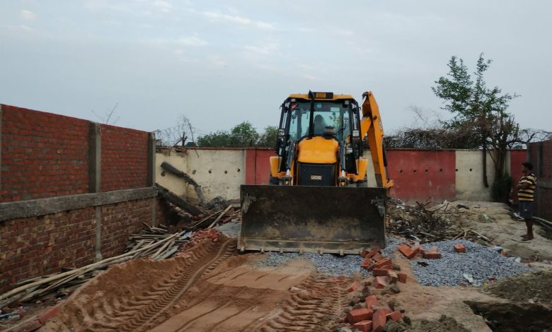 शिवलिंग रखकर मंदिर के नाम से 3000 वर्गफुट पर, अवैध निर्माणाधीन कब्जे को बुलडोजर से खाली कराया ।