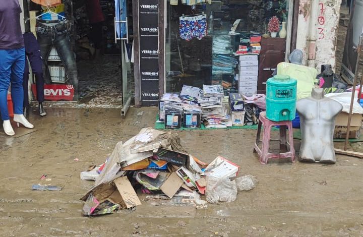 व्यापारियों के प्रतिष्ठानों में हुआ जल भराव