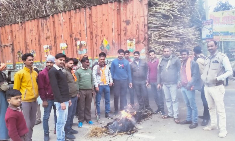 केसरिया हिन्दू वाहिनी के द्वारा सपा नेता का फूंका गया पुतला