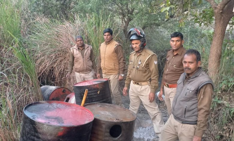 जंगल में दबिश के दौरान अवैध कच्ची शराब भट्ठियों को किया नष्ट