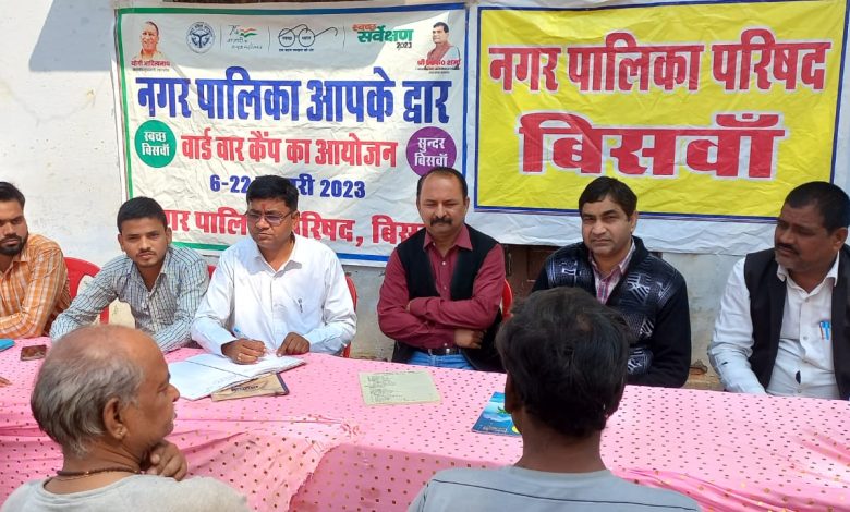 बिसवां/सीतापुर। नगर पालिका परिषद बिसवां के अधिशाषी अधिकारी राकेश जायसवाल के नेतृत्व में चलाए जारहे नगर पालिका आपके द्वार कार्यक्रम के तहत आयोजित कैंप में ईओ राकेश कुमार जायसवाल ने कहा कि कैम्प के माध्यम से नगर क्षेत्र की जनता से सीधा संवाद करने का अवसर मिल रहा है। जनता की समस्याओ से रूबरू होकर तत्काल प्रभाव से उसका निस्तारण कराने का भी काफी हद तक सफल प्रयास किया जा रहा है। ईओ राकेश कुमार जायसवाल ने कहा कि कैम्प में जनता की समस्याओं जैसे कर करेत्तर, दाखिल खारिज, साफ सफाई, पेयजल संयोजन, आपूर्ति, मार्ग प्रकाश, सड़क, गड्ढा मुक्त सड़क इत्यादि के संदर्भ में नगर के सभी वार्डों में कैम्प लगाकर वार्डवासियों की समस्याओं का निस्तारण कराने का सफलतापूर्वक प्रयास किया जा रहा है।
