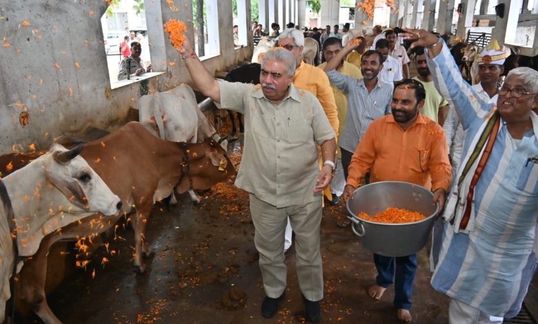 कानपुर: उत्तर प्रदेश के मुख्यमंत्री श्री योगी आदित्यनाथ जी के निर्देश पर कानपुर गौशाला सोसाइटी के तत्वाधान में जन्माष्टमी उत्सव गौशाला भौती शाखा में बड़े हर्षोल्लाह के साथ बनाया गया मौजूद जनमानस ने गौशाला में गायों की आरती कर पूजा की और फूलों की वर्षा की गौशाला में माहौल उत्सव जैसा था । । मुख्य अतिथि श्री राकेश सचान मंत्री उत्तर प्रदेश शासन ने गौ भक्तों को संबोधित करते हुए कहा कि जब-जब धरती पर पाप और अधर्म हद से ज्यादा बढ़ जाता है तब तब भगवान ने धरती पर अवतार लिया भगवान विष्णु ने किसी न किसी उद्देश्य की पूर्ति के लिए धरती पर अवतरित हुए विष्णु जी का एक अवतार श्री कृष्ण जी है भारत में कृष्ण जन्माष्टमी का त्योहार बहुत धूमधाम से मनाया जाता है कृष्ण जी के आशीर्वाद और कृपा पाने के लिए हर साल लोग इस दिन व्रत रखते हैं भगवान कृष्ण सुरक्षा ,प्रेम, करुणा और जुनून के देवता है उन्हें धैर्य, करुणा और प्रेम का प्रतीक माना जाता है उत्सव में सोसाइटी के महामंत्री श्री पुरुषोत्तम लाल तोषनीवाल ने आए हुए अतिथियों को अंगवस्त्र व माला पहनकर स्वागत किया तथा मौजूद जनमानस को जन्माष्टमी की बधाई दे कार्यक्रम में प्रमुख रूप से सर्वश्री सुरेश गुप्ता अवधेश बाजपेई श्री कृष्ण गुप्ता बब्बू जी रमेश मिश्रा श्याम कनोडिया किशन लखोटिया विपिन अग्रवाल शत्रुघ्न सिंह आदि प्रमुख थे अधिकारी गणों में मुख्य पशु चिकित्सा अधिकारी श्री आर.पी.मिश्रा पर खादी ग्रामोद्योग अधिकारी अशोक शर्मा व मनोज शुक्ल तथा राजू द्विवेदी ,रामगोपाल मिश्रा मुख्य प्रबंधक, संजीव द्विवेदी प्रबंधक ,बी, डी, चंदेल, विवेक सिंह ,आदि प्रमुख थे