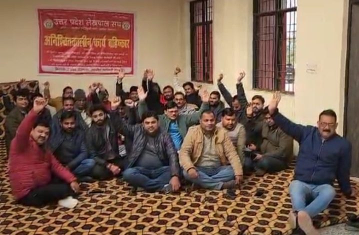 उ०प्र० लेखपाल संघ ने सतर्कता अधिष्ठान कार्मिकों द्वारा लेखपाल के साजिशन ट्रैप पर धरना