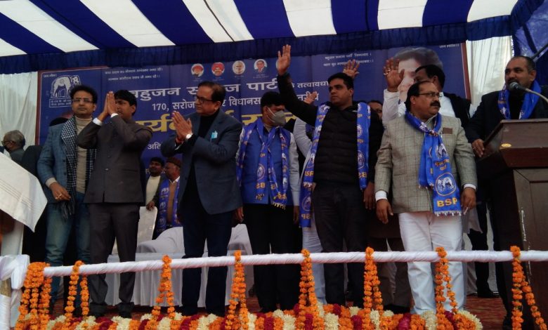 लखनऊ सरोजनीनगर के गौरी बाजार स्थित लक्ष्मण नर्सरी के सामने मैदान में रविवार को बहुजन समाज पार्टी से विधायक पद के प्रत्याशी जलीस खान द्वारा कार्यकर्ता सम्मेलन आयोजित किया गया ।कार्यकर्ता सम्मेलन में बहुजन समाज पार्टी के राष्ट्रीय महासचिव सतीश चंद्र मिश्रा को बतौर मुख्य अतिथि के रुप में आमंत्रित किया गया था ।