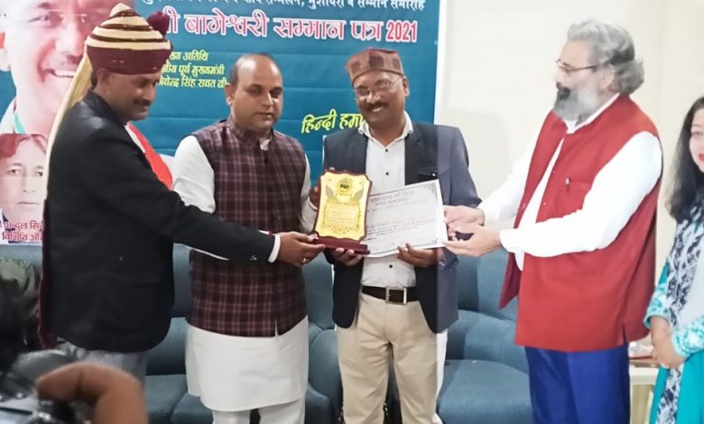 कार्यक्रम में लखीमपुरखीरी उत्तर प्रदेश के राष्ट्रीय कवि गोविन्द गुप्ता, प्रशांत मिश्रा, सहित सभी साहित्यकारों को बागेश्वरी सम्मान से सम्मान दिया गया जो पूर्व मुख्यमंत्री त्रिवेंद्र सिंह रावत के प्रतिनिधि के रूप में बिपिन पवार जी ने प्रदान किया इस अवसर पर संस्थापिका जिया हिन्दवाल में सभी का आभार व्यक्त करते हुये आगमन के लिए आभार व्यक्त किया।