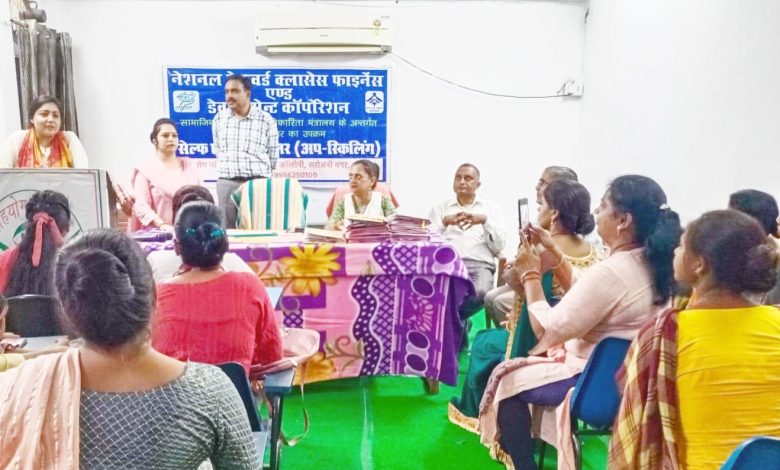 सुश्री नेहा सिंह शनिवार को सरोजनीनगर की देवलोक कालोनी स्थित सहयोग परिवार परिसर में भारत सरकार के राष्ट्रीय पिछड़ा वर्ग वित्त एवं विकास निगम के प्रायोजन से राष्ट्रीय उद्यमिता एवं लघु व्यवसाय विकास संस्थान (निसबड) द्वारा आयोजित अपस्किलिंग प्रशिक्षण कार्यक्रम की प्रतिभागियों को प्रमाण पत्र प्रदान करने के दौरान उन्हें सम्बोधित कर रही थी।