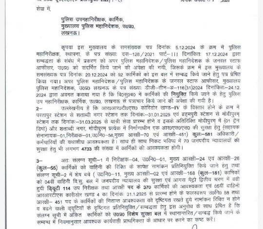 लखनऊ। उत्तर प्रदेश मै योगी सरकार द्वारा पुलिस विभाग मै विशेष सुरक्षा बल (यूपीएसएसएफ)का गठन तो कर दिया गया जिसमे पीएसी के जवानो व नागरिक पुलिस के कर्मचारीयों की नियुक्ति होती है और वह मेट्रो ड्यूटी, मन्दिर ड्यूटी, कोर्ट ड्यूटी व अन्य महत्वपूर्ण ड्यूटी करते है। पुलिस विभाग के सूत्रों के अनुसार विशेष सुरक्षा बल मुख्यालय लखनऊ से 8 जनवरी 2025 को नियुक्ति हेतु पीएसी के जवानो व नागरिक पुलिस के कर्मचारियों की सूची डीआईजी कार्मिक स्थापना को भेजी गयी!