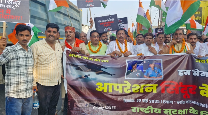 लखनऊ| ऑपरेशन सिंदूर की सफलता के उपलक्ष्य में भारतीय सेना के शौर्य को सलाम करते हुए मोहनलालगंज में गुरुवार को एक भव्य शौर्य तिरंगा यात्रा का आयोजन किया गया। इस यात्रा का नेतृत्व मोहनलालगंज के विकास पुरुष व मोहनलालगंज के ब्लॉक प्रमुख ओम प्रकाश शुक्ला विंद्धेश्वरी ने किया।