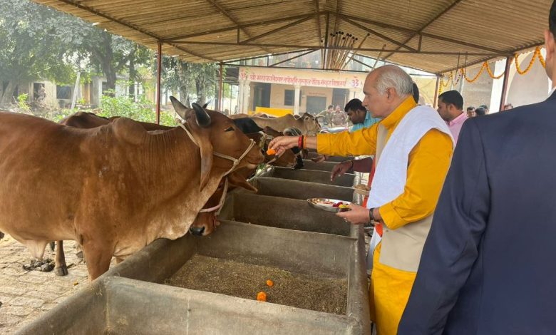 गोपाष्टमी पर पशुधन मंत्री ने गौ वंशों का तिलक कर किया पूजन