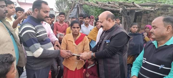 ग्राम मझरा पश्चिम में मृतक नागेश गुप्ता की पत्नी लीलावती गुप्ता को दिए 20000 बीस हजार रुपये,