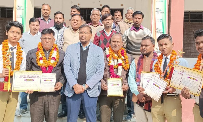 सीतापुर। 50 वी राज्य स्तरीय विज्ञान, गणित एवं पर्यावरण प्रदर्शनी 2022 में राजकीय इंटर कॉलेज के छात्र गौरी शंकर, प्रशांत कुमार श्रीवास्तव ने प्रथम स्थान प्राप्त किया साथ ही आयुष्मान दीक्षित ने सांत्वना पुरस्कार प्राप्त किया ।गौरी शंकर ने सीनियर वर्ग में वर्तमान नवाचार के साथ ऐतिहासिक विकास में प्रथम स्थान प्राप्त किया इस पर आधारित मॉडल कृषि यंत्र गन्ना कटर हसिया बनाया प्रशांत कुमार श्रीवास्तव ने पर्यावरण अनुकूल सामग्री बायो डिग्रेडेबल यूटेंसेल से संबंधित पलारी से बर्तन का निर्माण मॉडल बनाकर प्रथम स्थान प्राप्त किया सांत्वना पुरस्कार प्राप्त करने वाले आयुष्मान दिक्षित ने पर्यावरण संबंधी चिंताएं विषय पर अपना मॉडल फसल सुरक्षा तथा जानवरों का बचाव से संबंधित मॉडल बनाकर प्रस्तुत किया इन तीनों छात्रों के मार्गदर्शक राजकीय इंटर कॉलेज सीतापुर के शिक्षक वीरेश कुमार सिंह एवम रवि सक्सेना ने पूर्ण मनोयोग के साथ मार्गदर्शन कर मॉडल को प्रस्तुत कराने में अथक प्रयास किया फलस्वरूप राजकीय इंटर कॉलेज सीतापुर के दो छात्रों ने प्रथम स्थान एवं एक छात्र सांत्वना पुरस्कार राज्य स्तरीय विज्ञान, गणित पर्यावरण संबंधी चिंताएं प्रतियोगिता में प्रथम एवं सांत्वना पुरस्कार प्राप्त किया इस बड़ी सफलता प्राप्त करने के पश्चात कॉलेज के प्रथम दिवस के आगमन पर राजकीय इंटर कॉलेज सीतापुर के कम्यूनिटी हाल में लेफ्टिनेंट खान शादाब जमीर के संयोजकत्व में स्वागत समारोह का आयोजन किया गया आयोजन में छात्रों के मार्गदर्शक प्रिय शिक्षक वीरेश सिंह एवं रवि सक्सेना को जिला विद्यालय निरीक्षक अनूप कुमार तिवारी ने माल्यार्पण ,मिठाई खिलाकर एवं बच्चों को मिठाई , गोल्ड मेडल, स्म्रति चिन्ह, प्रमाण पत्र देकर स्वागत अभिनंदन वंदन किया प्रदेश स्तर पर विद्यार्थियों के संरक्षक मार्गदर्शक शिक्षक रवि सक्सेना एवं वीरेश सिंह ने अपने-अपने छात्रों के द्वारा की गई तैयारियों एवं मॉडल के विषय पर अपना वक्तव्य रखते हुए सभागार में उपस्थित सभी छात्रों को उनके द्वारा बनाए गए मॉडलों को उल्लेखित करते हुए सारांश का प्रस्तुत किया स्वागत की दिव्यता भव्यता को देखकर मैं खुद को अभिभूत समझता हूं इसके लिए मैं विद्यालय परिवार के समस्त शिक्षकों का आजीवन ऋणी रहूंगा आप सब ने इस प्रकार का कार्यक्रम आयोजित कर स्वागत अभिनंदन किया इसके लिए सहृदय आभार व्यक्त करता हूं कार्यक्रम के मुख्य अतिथि अनूप तिवारी छात्रों को संबोधित करते हुए कहा कि आप सबको प्रेरणा लेने की आवश्यकता है कि अपने विद्यालय के छात्र राज्य स्तरीय प्रतियोगिता में गणित विज्ञान एवं पर्यावरण संबंधी मॉडल में प्रथम एवं सांत्वना पुरस्कार प्राप्त किया है आप सभी बच्चे अगले 