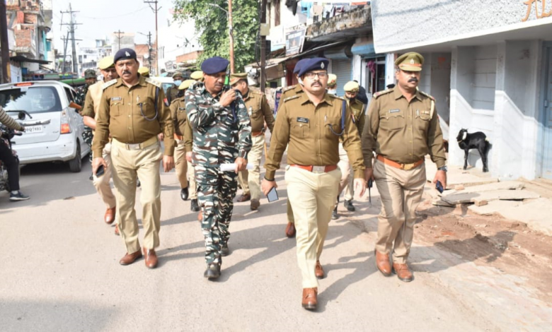 – एसपी ने पुलिस बल और सीआरपीएफ के साथ किया शहर में फ्लैग मार्च