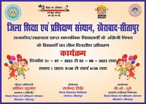 अंग्रेजी प्रशिक्षण का संचालन श्री अमित कुमार, प्रवक्ता, गणित प्रशिक्षण का संचालन श्रीमती मनीषा, प्रवक्ता, एवं विज्ञान प्रशिक्षण का संचालन श्रीमती सीमा वर्मा, प्रवक्ता, जिला शिक्षा एवं प्रशिक्षण संस्थान, खैराबाद-सीतापुर के द्वारा किया गया। तकनीकी सहयोग श्री शशांक तिवारी, कनिष्क सहायक, डायट सीतापुर के द्वारा दिया गया।