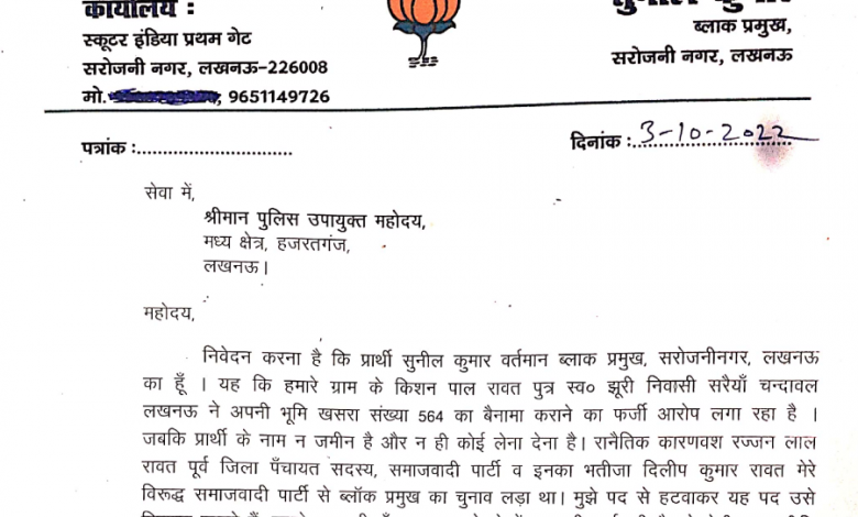 साथ ही मुझे मानसिक रूप से प्रताड़ित कर रहे हैं। इसको लेकर मैंने शिकायत भी दर्ज कराई है। आपको बता दें कि ब्लाक प्रमुख ने सरोजनीनगर बीडीसी एकता नाम से बने एक ह्वाट्सएप ग्रुप के कुछ स्क्रीन शॉट भी हमसे साझा किए हैं। जिसमें एक व्यक्ति द्वारा ब्लाक प्रमुख के खिलाफ आमरण अनशन की बात के साथ ही 3 दिन के अंदर फाड़ देने की बात भी कही जा रही है। ब्लाक प्रमुख ने आरोप लगाया है कि कुछ समाजवादी पार्टी के पुराने लोग दल बदलकर बीजेपी में आए हैं वह लगातार मेरे खिलाफ षड़यंत्र कर रहे है। बहरहाल मामला जो भी जांच के बाद दूध का दूध और पानी का पानी हो जाएगा।