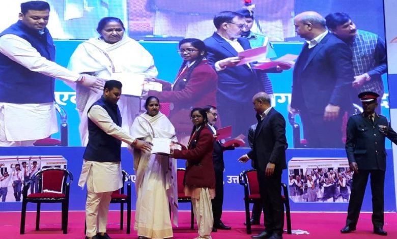 लखनऊ के कैप्टन मनोज कुमार पांडेय उत्तर प्रदेश सैनिक स्कूल में स्थित डॉ. संपूर्णानंद प्रेक्षाग्रह में प्रदेश के मुख्यमंत्री योगी आदित्यनाथ, राज्यमंत्री स्वतंत्र प्रभार माध्यमिक शिक्षा गुलाब देवी, राज्यमंत्री स्वतंत्र प्रभार बेसिक शिक्षा संदीप सिंह सहित कई अन्य अतिथियों द्वारा मेधावी छात्र सम्मान समारोह के दौरान बोर्ड परीक्षा 2022 में प्रदेश मेरिट सूची में छठा स्थान पाने वाली कालेज की हाईस्कूल की छात्रा शीतल वर्मा को एक लाख रुपए की चेक, टेबलेट, मेडल व एग्जाम वेरियर्स बुक तथा जनपद स्तर पर मुख्य अतिथि एडीएम रामभरत तिवारी, डीआईओएस राजेंद्र सिंह के द्वारा हाईस्कूल की पलक मौर्या, अल्का वर्मा, अर्पिता वर्मा, अनुभव शुक्ल, शबीना अंसारी, साक्षी मिश्रा, श्रद्धा वर्मा व इंटरमीडिएट परीक्षा में प्रदेश व जनपद मेरिट में स्थान पाने वाले अमित चक्रवर्ती व अनुष्का वर्मा सहित नौ विद्यार्थियों को टैबलेट, 21 हजार रूपए की चेक, मेडल, प्रशास्तिपत्रव एक्जाम वैरियर्स पुस्तक प्राप्त कर सम्मानित होने के बाद कालेज आने पर बधाई दी।
