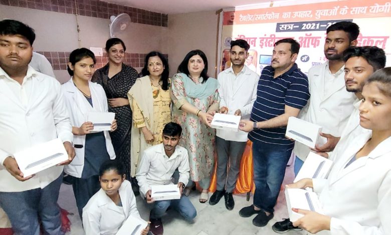 इंडियन इंस्टीट्यूट आफ पैरामेडिकल साइंसेज परिसर में हुआ स्मार्टफोन व टेबलेट का वितरण