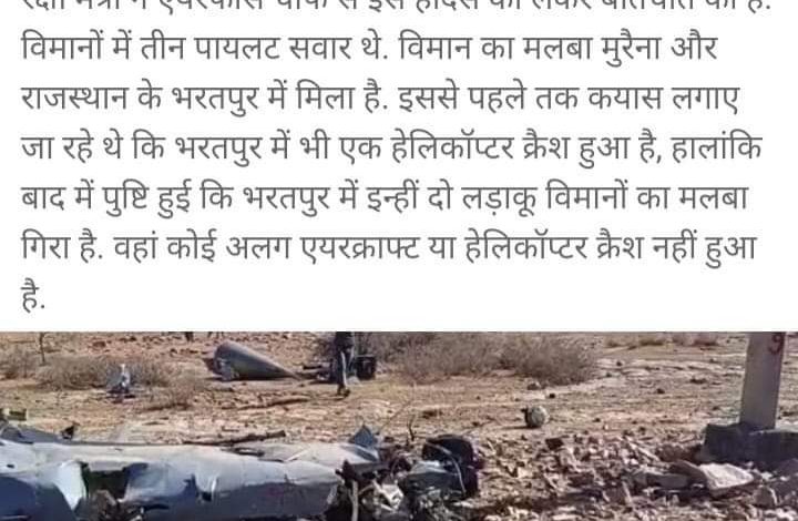 मध्यप्रदेश में सुखोई और मिराज विमान दुर्घटनाग्रस्त, पायलट की मौत