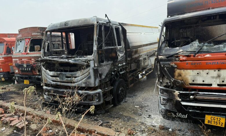 तीन तेल टैंकरों में लगी आग, फायर ब्रिगेड ने सूझबूझ से टाली बड़ी दुर्घटना