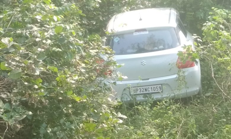 अनियंत्रित होकर कार दो बाइकों से टकरा कर खाई में गिरी, आधा दर्जन घायल