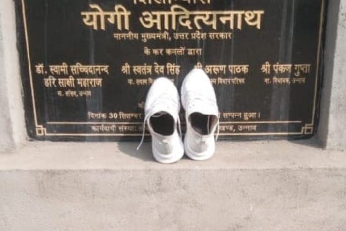 उन्नाव। दही थाना के सामने लगे शिलान्यास पत्थर के नीचे रखे जूते की फोटो सोशल मीडिया पर वायरल होने के बाद लोग तरह-तरह के कमेंट कर पुलिस को कोसते दिखाई दे रहा है | जब कि सूत्रों की मानें तो यह फोटो 4 नवम्बर दीपावली से एक दिन का है |