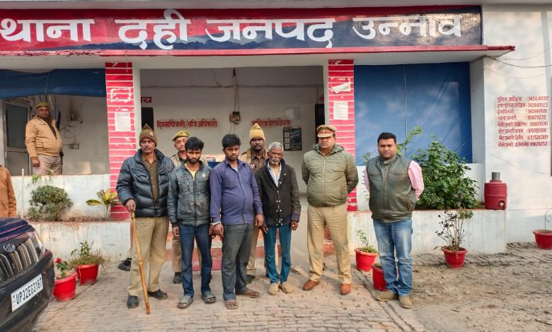 उन्नाव। दही थाना क्षेत्र के सोनिक में शनिवार को अपने खेत की फसल मवेशियों से बचाने के लिए खेत में पिलर गाड़ कर बैरीकेडिंग कर रहे राजमिस्त्री अतुल पुत्र अर्जुन को उसके चचेरे भाई और उसके तीन लड़कों ने खेत की मेड़ के लिए विवाद कर कुल्हाड़ी से दो वार गले पर कर मौत के घाट उतार दिया था जिसके बाद उसकी पत्नी गुड्डी की भी हत्या करने दौड़े थे | लेकिन उसने भाग कर अपनी जान बचाई थी |